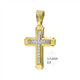 This cross is set in 14 karat yellow gold and has two accents with cubic zirconias. The cross features a slider opting out from the traditional loop. The slider pass through allows the chain to seamlessly blend with your chain without having to solder it in place, allowing you to...